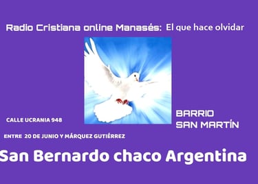 Somos una radio emisora cristiana online, estamos transmitiendo desde calle Ucrania 948 Entre 20 de junio y Marquez Gutierrez (Barrio San Martín) San Bernardo, Provincia del Chaco, Argentina.